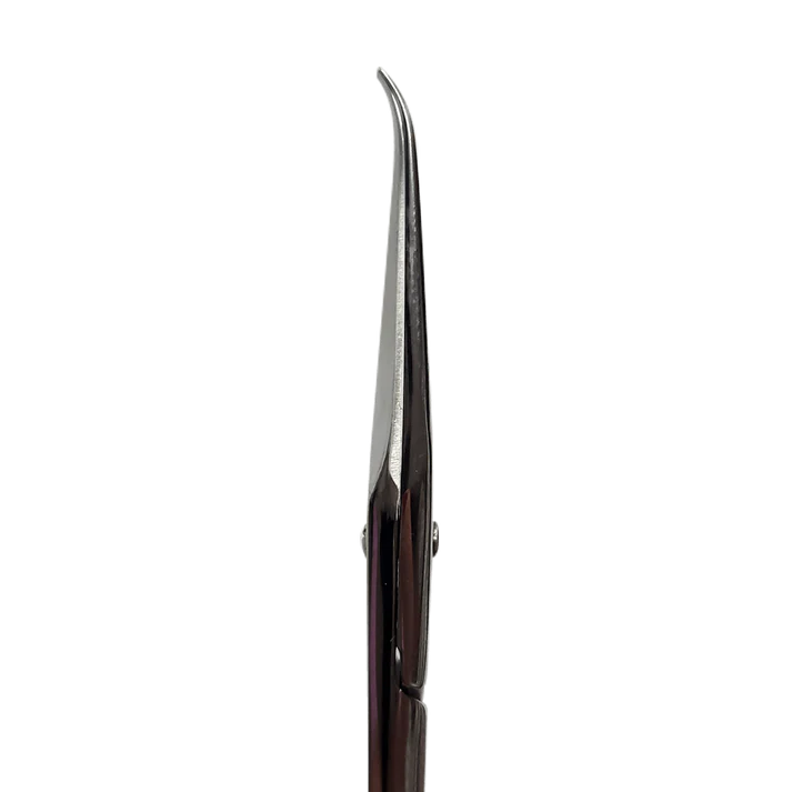 מספריים מקצועיים בקצה מעוקל, אידיאליים לטיפולי מניקור ופדיקור מדויקים. הקצה המעוקל מאפשר גזירה נקייה ובטוחה של קוטיקולות ללא פגיעה בעור, ומספק שליטה מירבית במהלך העבודה.