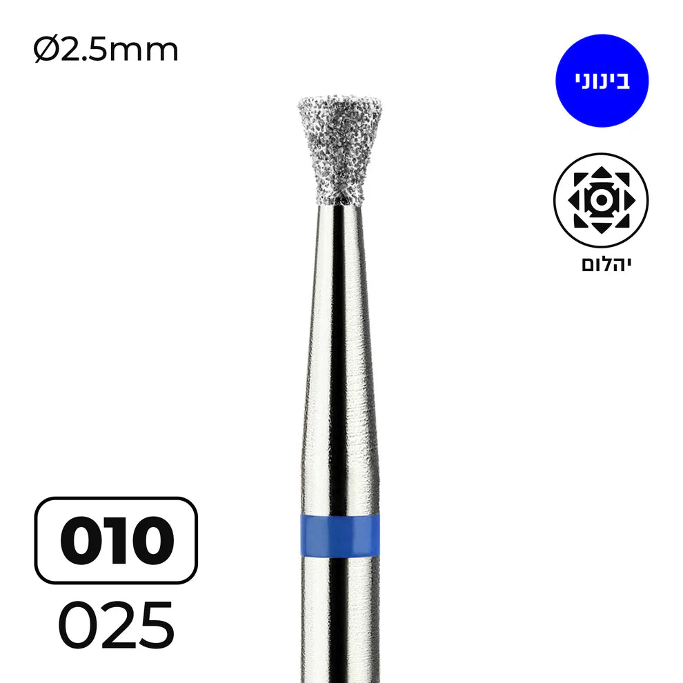 מקדח ראש שיוף יהלום לסלון יופי "קונוס הפוך" כחול בינוני 010/025