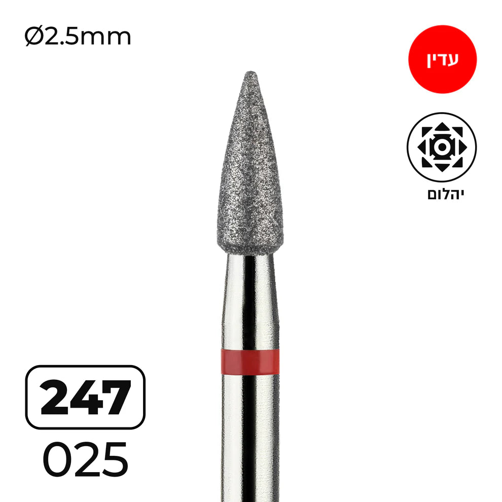 מקדח ראש שיוף יהלום לסלון יופי – “קונוס מחודד” אדום עדין 247/025