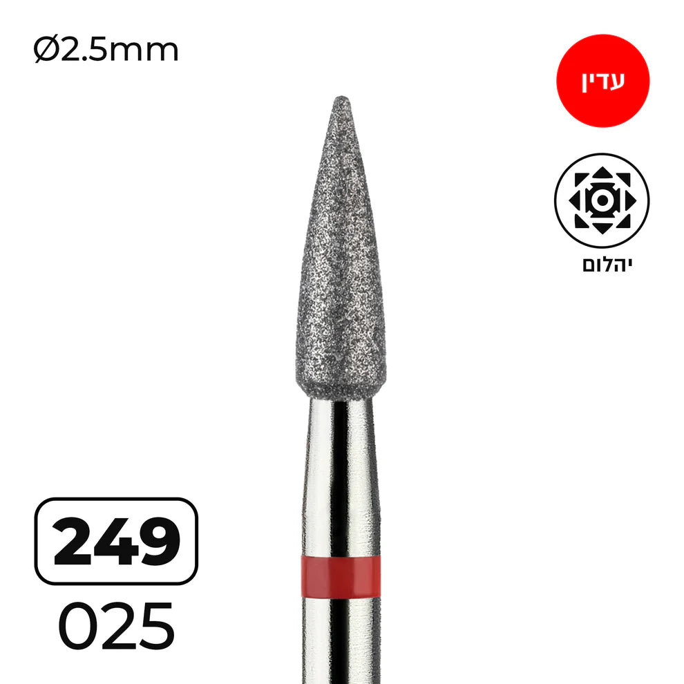 מקדח ראש שיוף יהלום לסלון יופי – “קונוס מחודד” אדום עדין 249/025