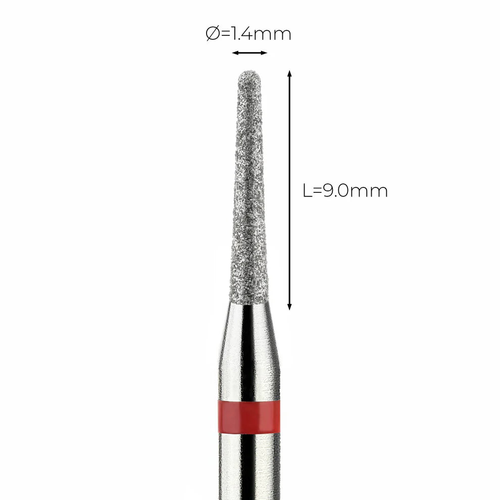 מקדח ראש שיוף יהלום לסלון יופי "קונוס עם קצה חצי-כדורי" אדום עדין 198/014