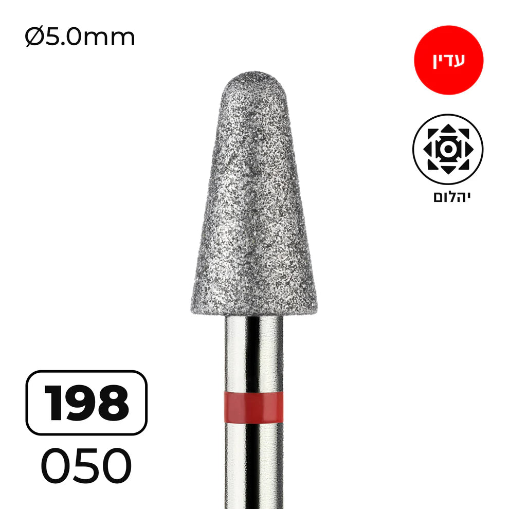 מקדח ראש שיוף יהלום לסלון יופי – “קונוס עם קצה חצי־כדורי” אדום עדין 198/050