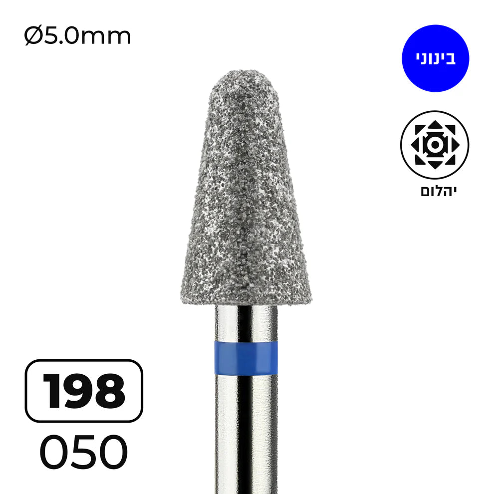 מקדח ראש שיוף יהלום לסלון יופי "קונוס עם קצה חצי-כדורי" כחול בינוני 198/050