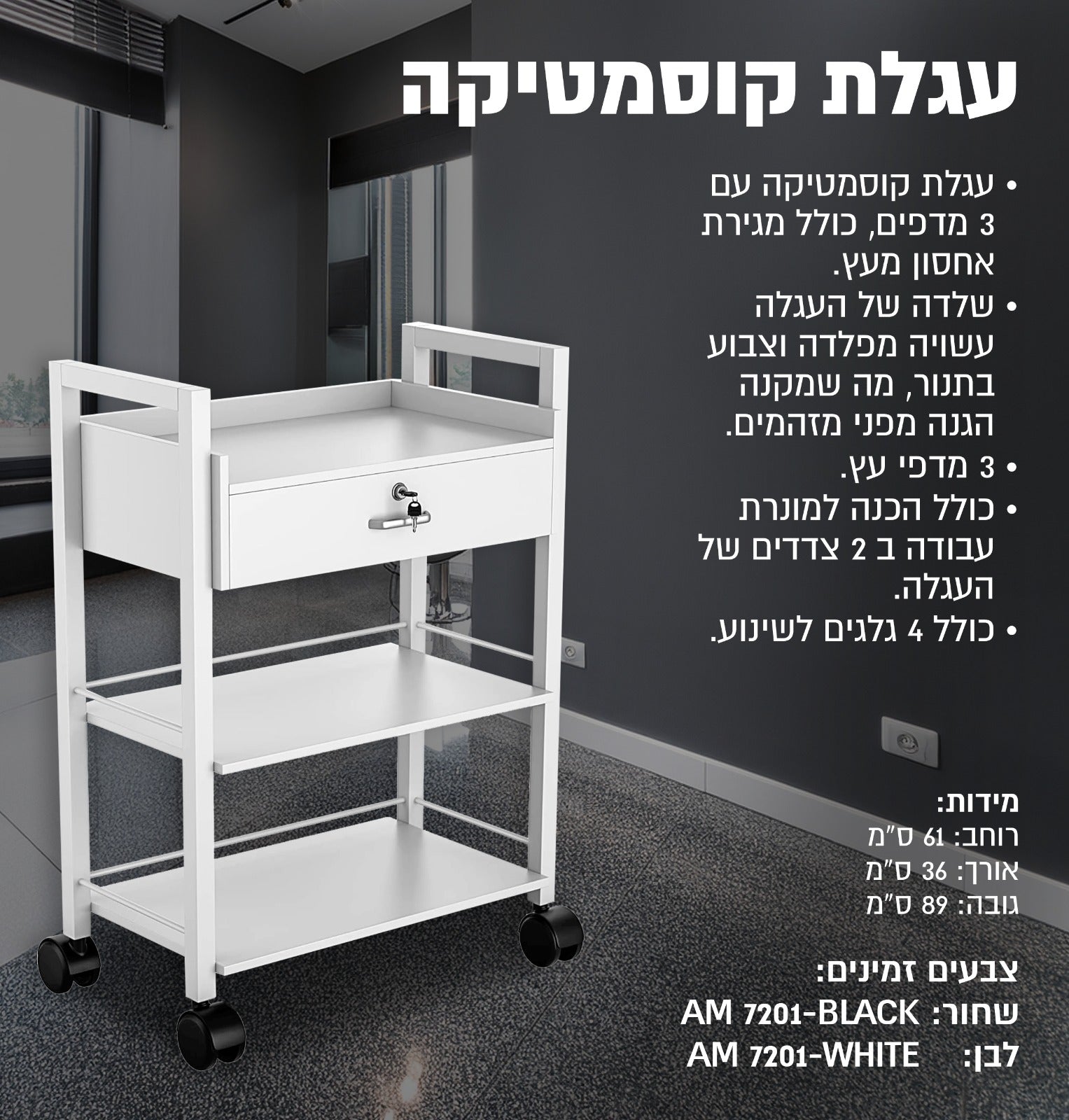עגלת קוסמטיקה עם 3 מדפים ומגירה